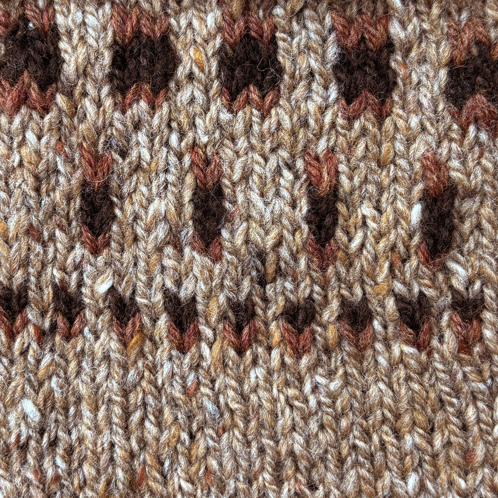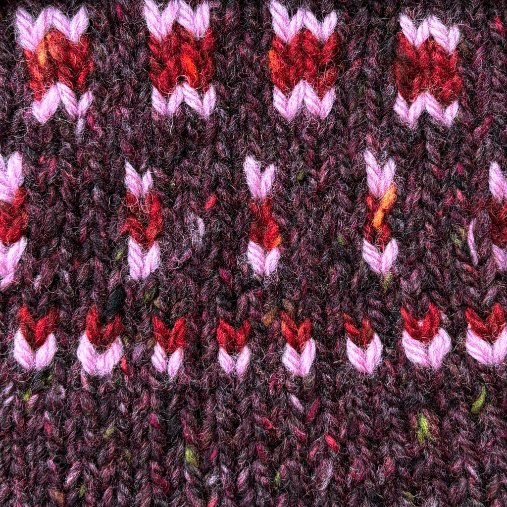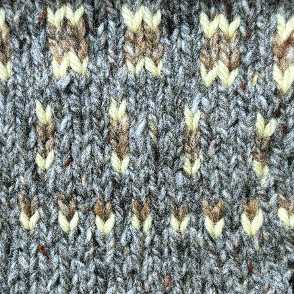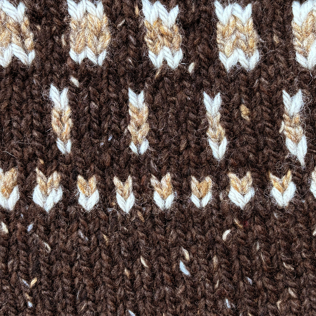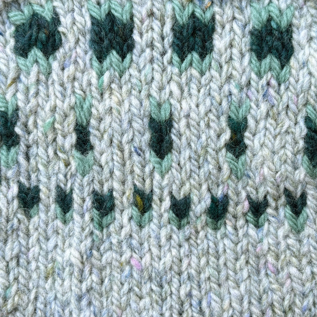 Der videoguides til alle teknikkerne i opskriften, så du kommer sikkert i mål. Sweateren strikkes i vores Tweed kombineret med Highland, som anvendes til én af kontrastfarverne.