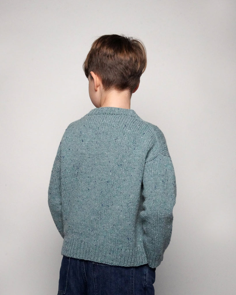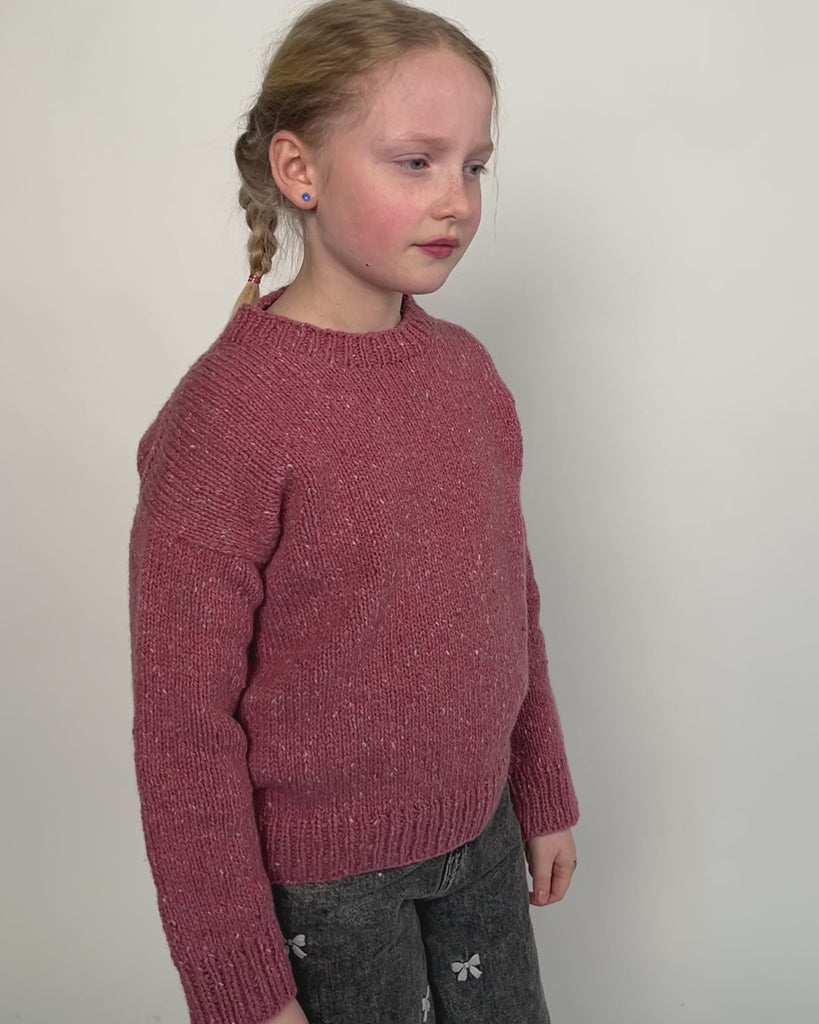 Langø Sweater bliver uden tvivl barnets nye yndlingssweater, som kan bruges året rundt! Sweateren har en god rummelig pasform kombineret med en hals i rib. Da den strikkes oppefra og ned, kan længden let reguleres. Langø Sweater strikkes i vores bløde Tweed i 100% merinould.
