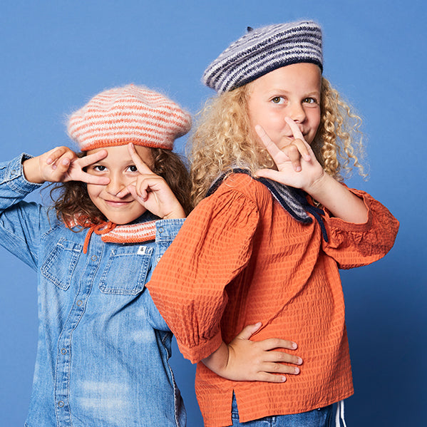 Langøya Baretten har en rummelig pasform. Kittet indeholder garn og opskrift til alle størrelser: Str. 4-6 (8-10) år.