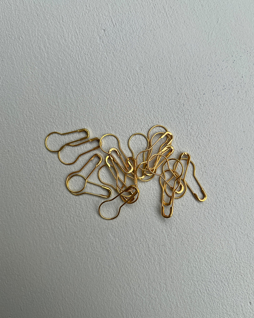 Disse maskemarkører er lavet i metal, og er samtidig en lille sikkerhedsnål. Den type markør er særlig velegnet til, når du har brug for at have en markering i dit strikketøj til eksempelvis såsom udtagninger eller særlige omgange. Den blanke guldfarve er også rigtig god, da man ser denne farve ekstra godt i strikketøjet. Maskemarkørerne passer til strikkepinde op til 7 mm.