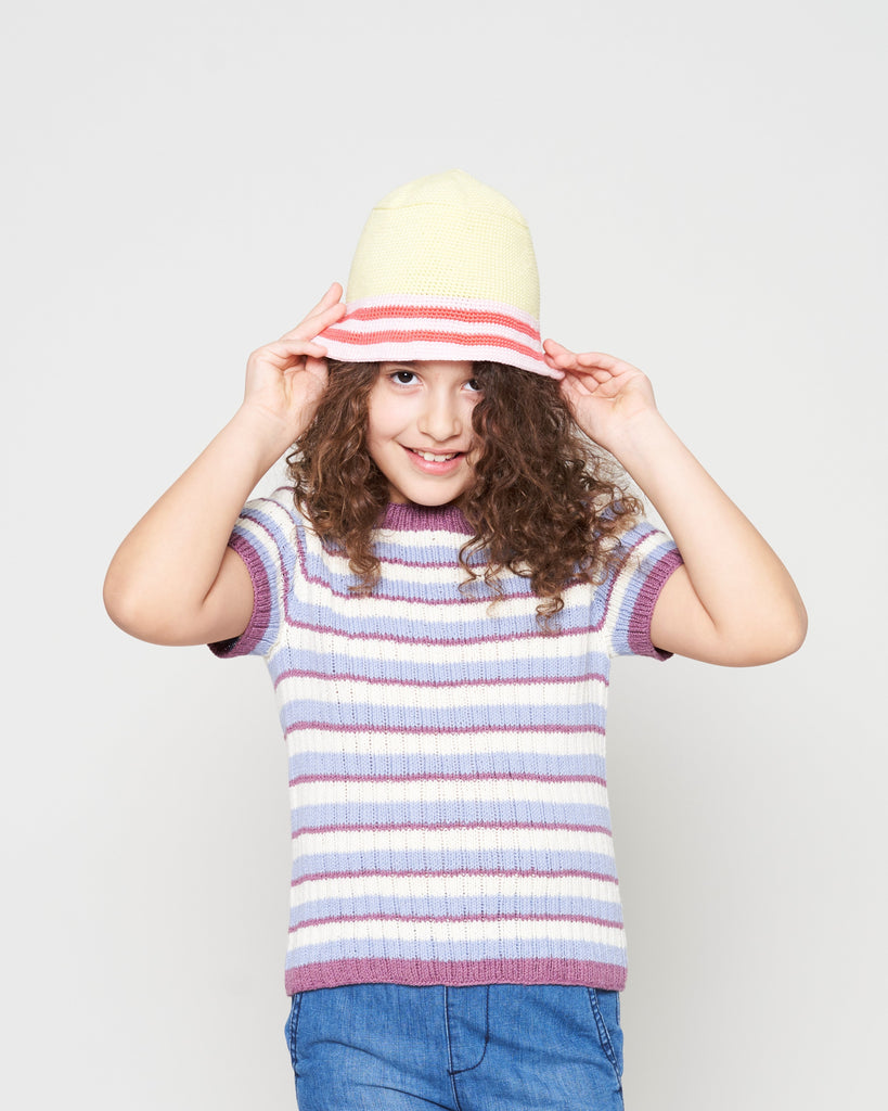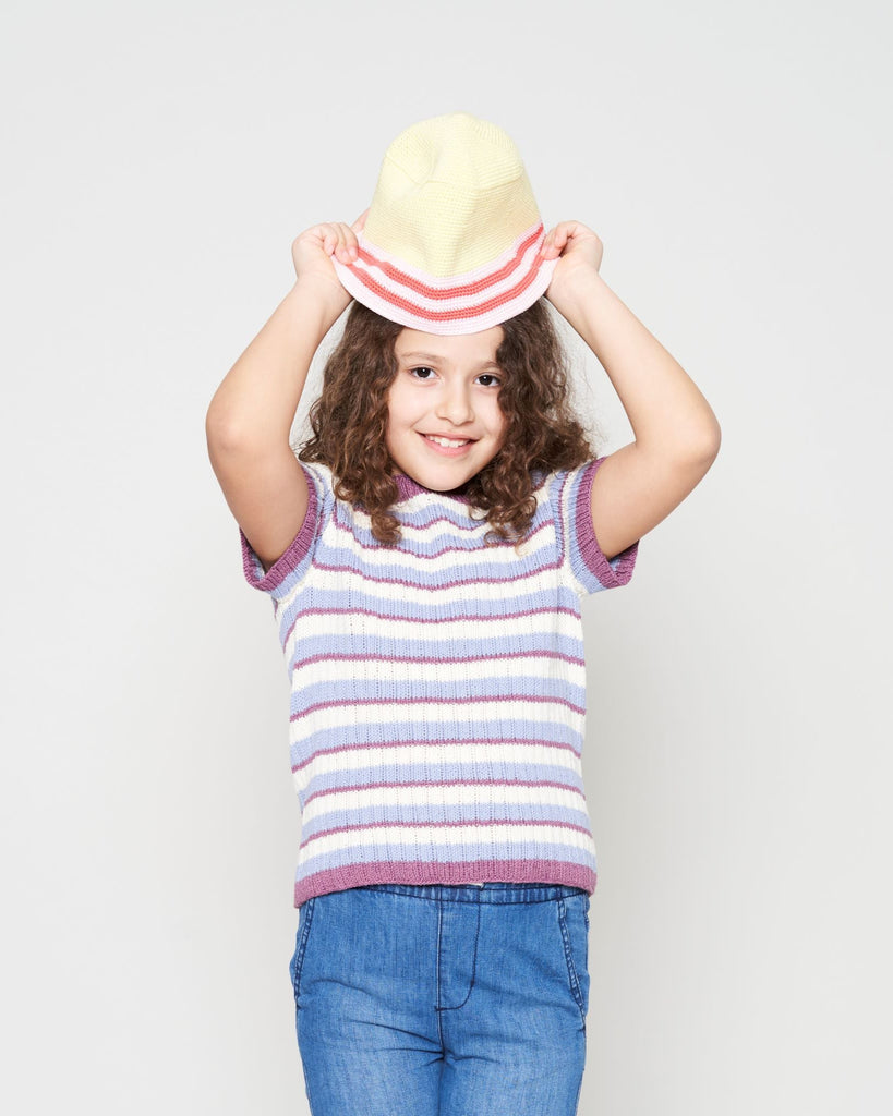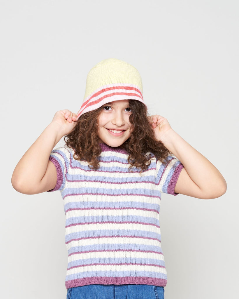 Omø Bøllehat er en sommerhat, som ethvert barn vil elske at få. Omø Bøllehat hækles med vores Shiny Cotton garn i tre søde og sjove farver. Der er mange farvekombinationer at vælge imellem, så du finder helt sikkert en variant, der bliver barnets favorit til at skåne mod solens stråler!
