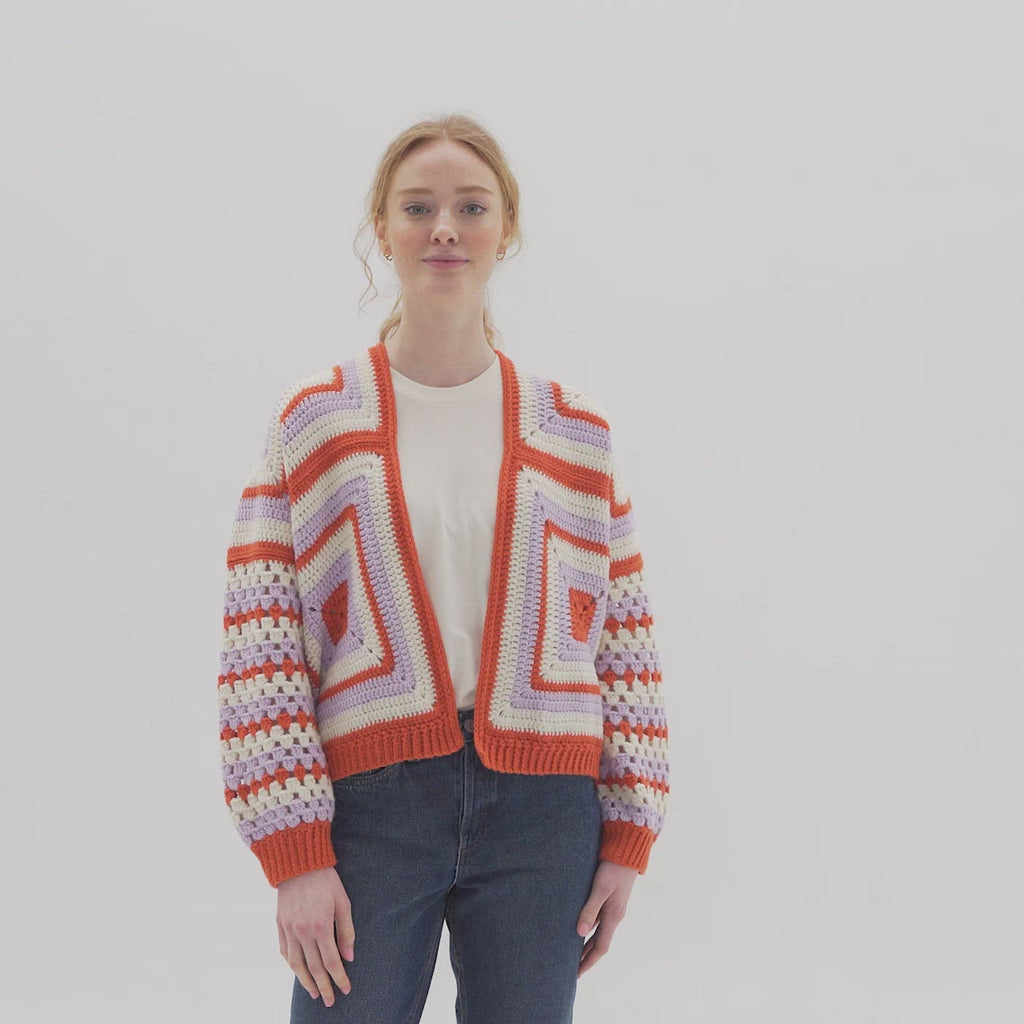 Omø Jakken er en kombination af et karakteristisk 70’er retro-look og tidens hotteste mode. Jakken er let at hækle, da du hækler med stangmasker i vores lækre Highland garn i 100% uld. Du kan vælge mellem mange flotte farvekombinationer i tre matchende farver til jakken, som du kan bruge året rundt!