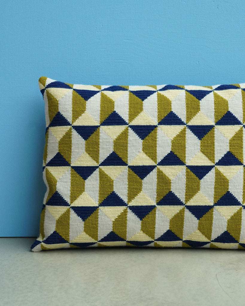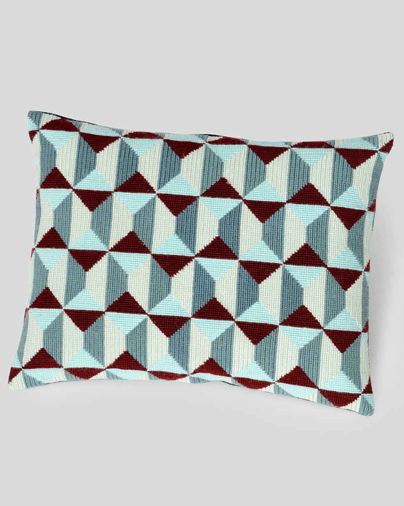 Bredholm Pude broderes i halve korssting i forskellige retninger efter et diagram. Puden monteres afslutningsvist med en bagbeklædning enten på symaskine eller i hånden.