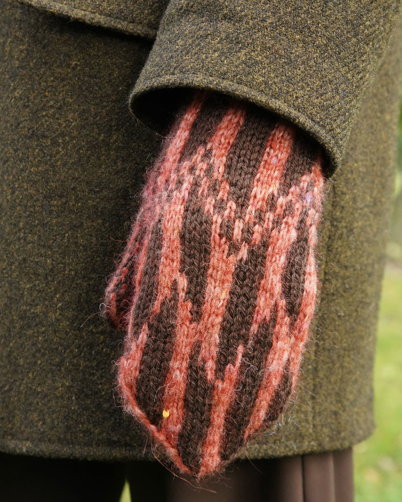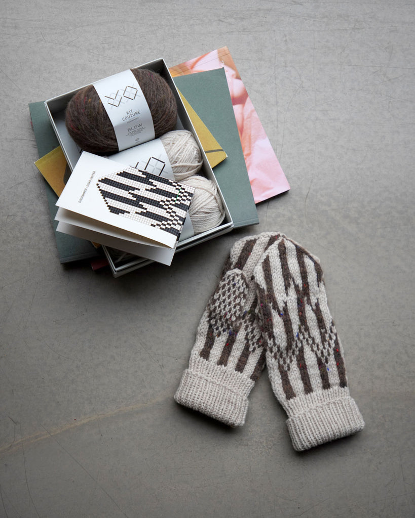 Disko Vanter Blow strikkes i to forskellige kvaliteter: Highland og Blow. Først strikkes en lang ribkant i Highland, hvorefter der strikkes mønster i de to kvaliteter. Der strikkes med dominans, så Blow garnet træder tydeligt frem. Hånden strikkes med en markering i kontrastgarn til tommel, og tommelen strikkes på til slut.