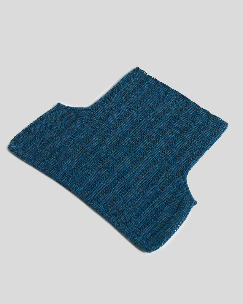 Eldey Halsedise strikkes oppefra og ned i et ret og vrang strukturmønster. Halskanten strikkes først, hvorefter der laves udtagninger i begge sider på hver side af fire skuldermasker. Til slut deles arbejdet og for- og bagstykke strikkes færdigt frem og tilbage hver for sig.