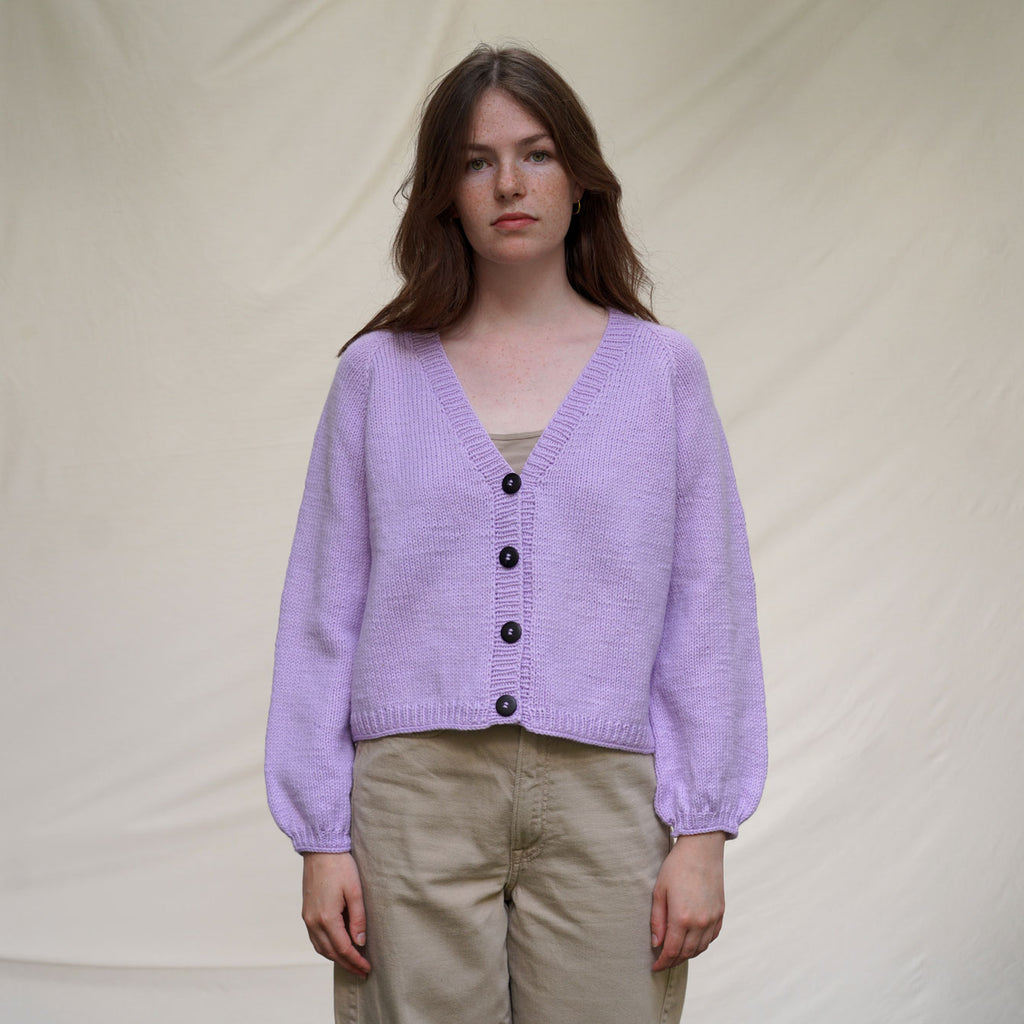 Enholmen Cardigan strikkes oppefra og ned i glatstrik. Bærestykket strikkes først frem og tilbage med udtagninger til raglan, og samtidig tages masker ud foran til V-hals. Der sættes masker af til ærmer, og kroppen strikkes færdig. Ærmerne strikkes, og til slut samles der masker op til forkanter, der strikkes i rib med knaphuller. Til slut sys der knapper i.
