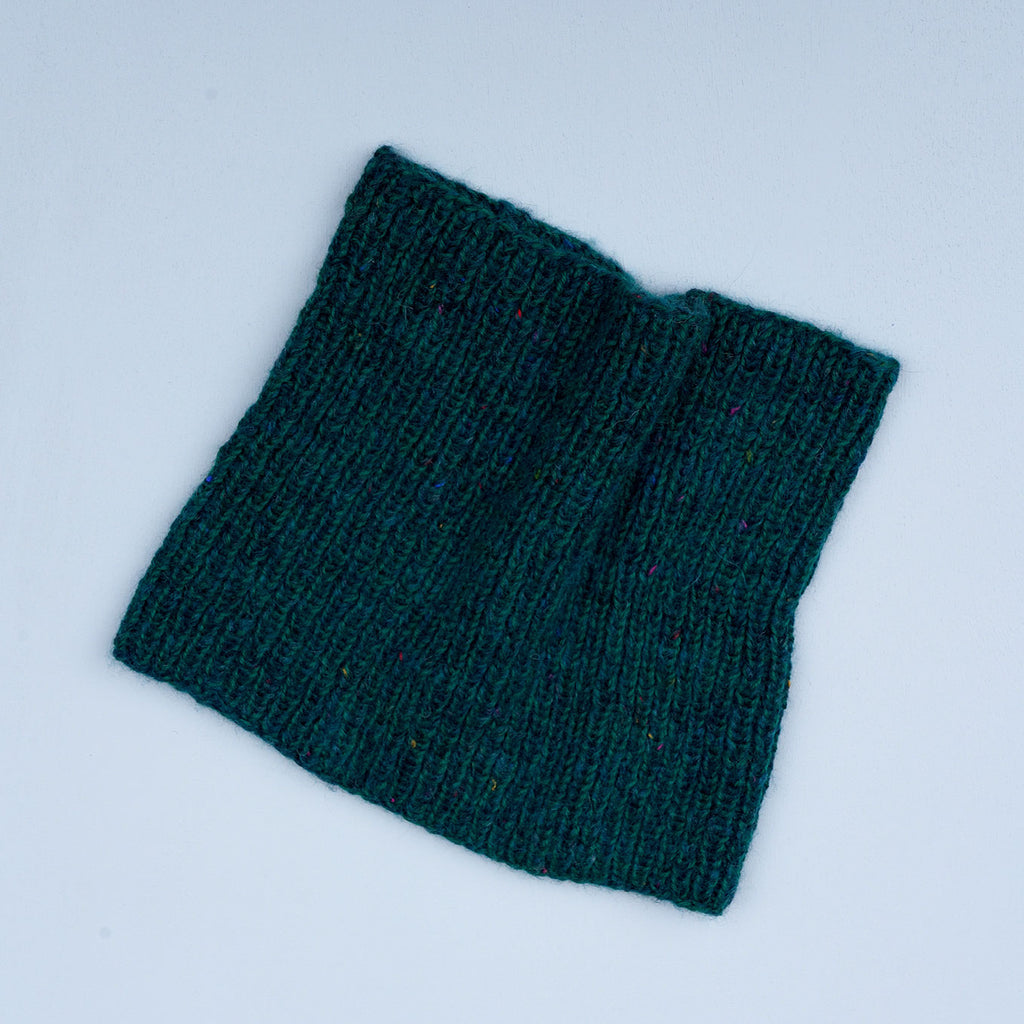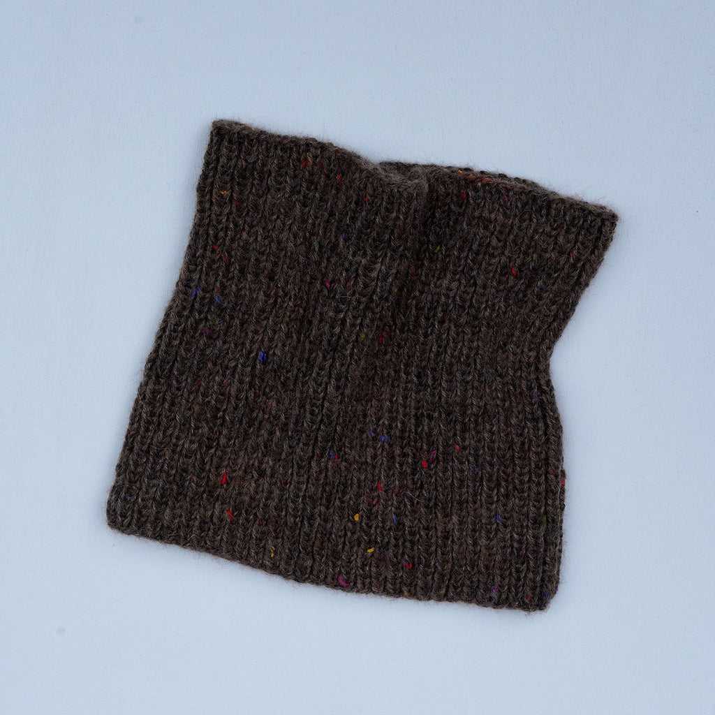 Hamnö Halsrør strikkes rundt i rib nedefra og op med en tråd af hver kvalitet.