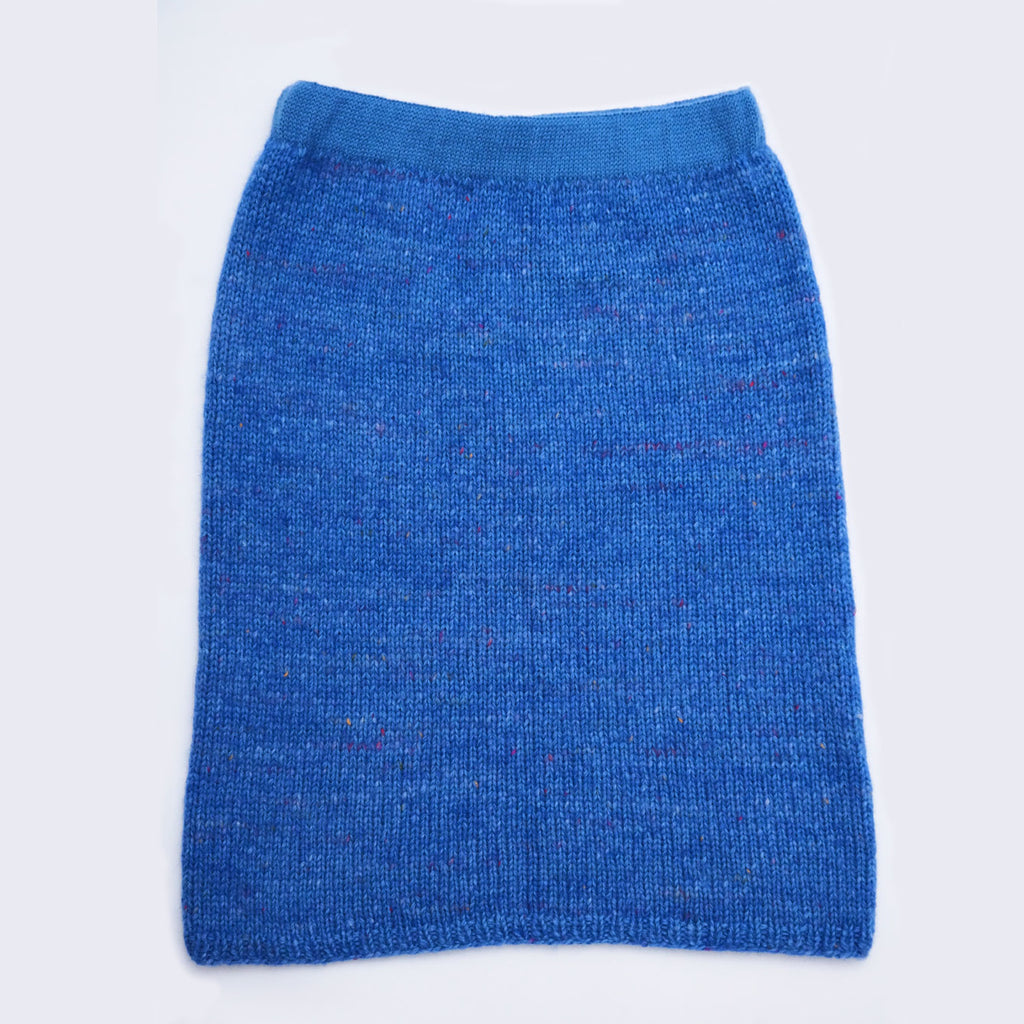 Nederdelen strikkes rundt nedefra og op i glatstrik med en tråd af hver garnkvalitet. Øverst strikkes en kant i Alpaca, der efterfølgende foldes ned og monteres med en bred elastik.