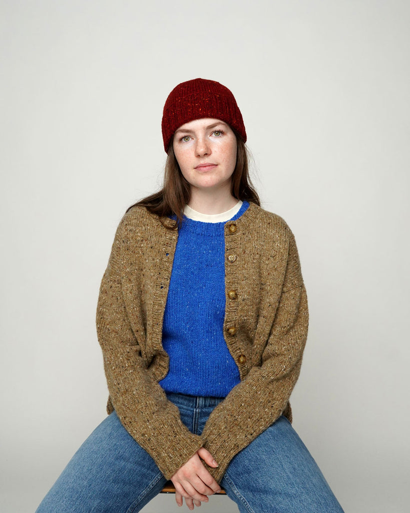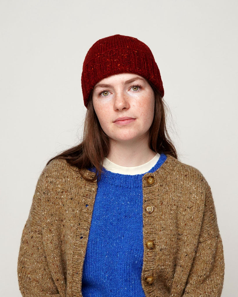 Langø Hue er en god basis-hue, som er let at strikke - og dermed ideel, hvis du er begynder. Huen er designet med en velsiddende, klassisk pasform, så den passer godt til både kvinder og mænd. Langø Hue strikkes i vores bløde Tweed i 100% merinould.
