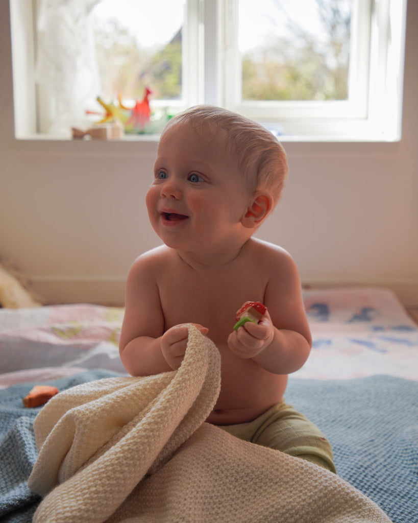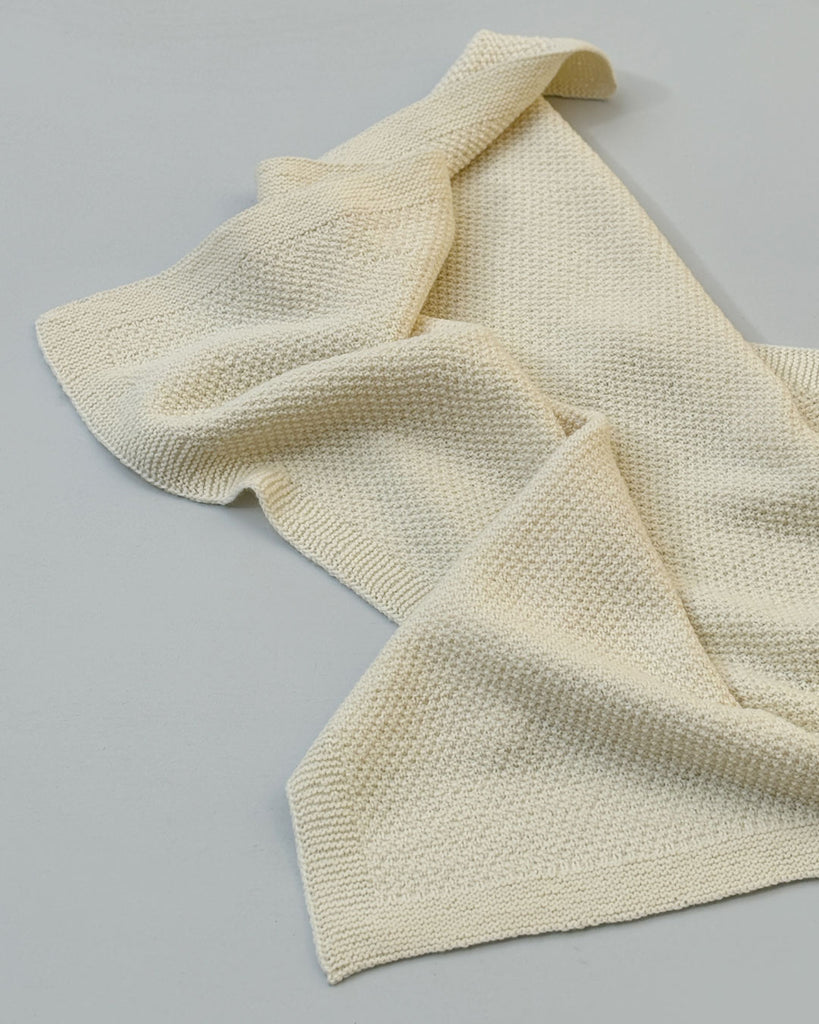 Nyland Babytæppe strikkes frem og tilbage i retriller og dobbelt perlestrik.