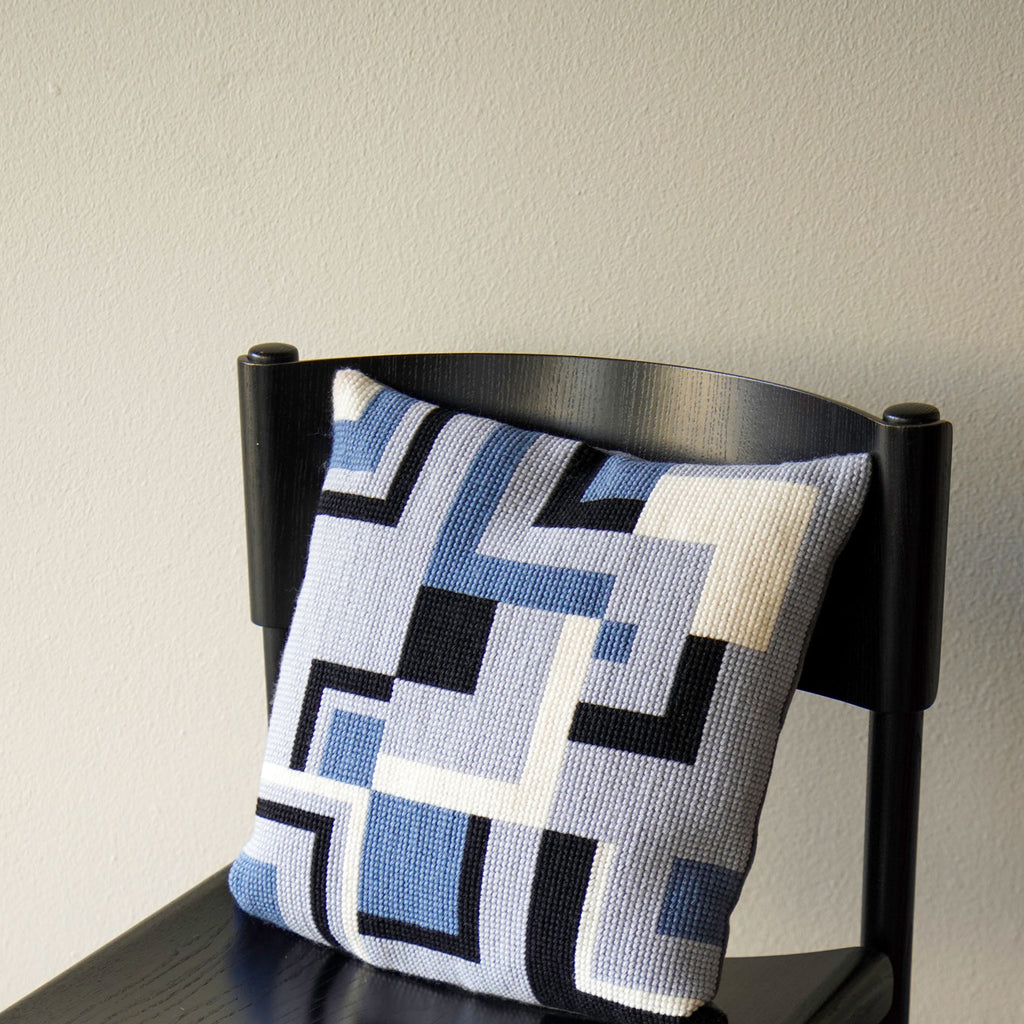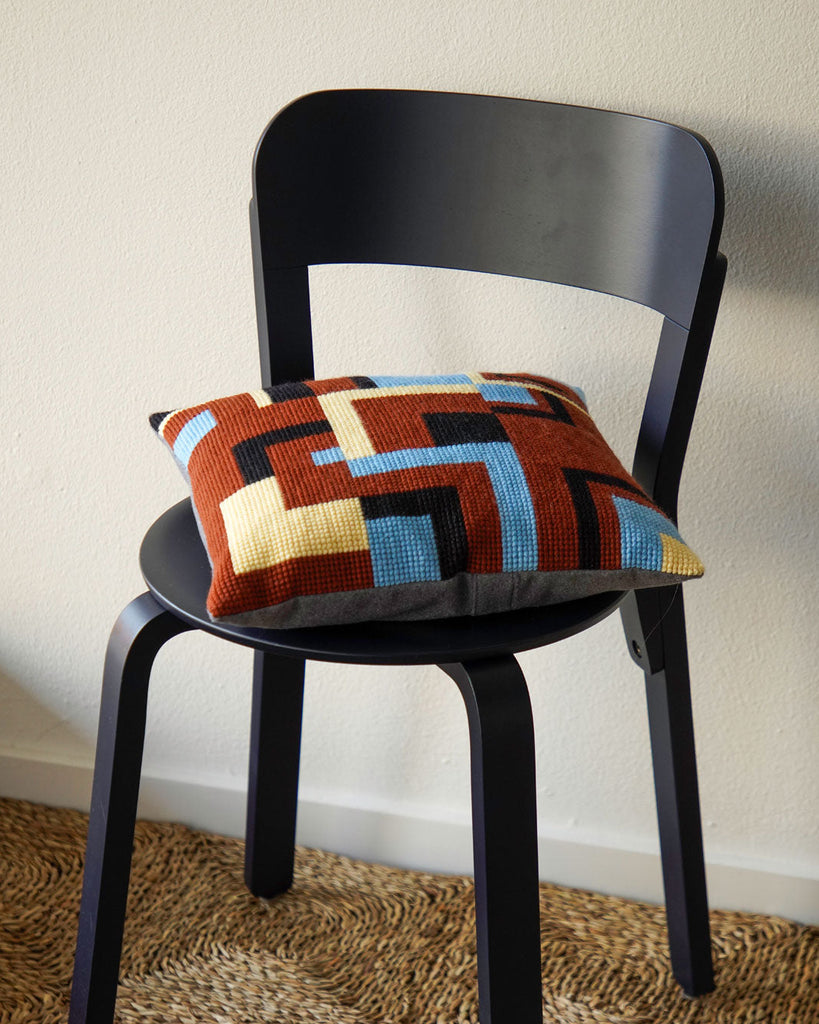 Trekroner Pude broderes med korssting i uldbroderigarn efter et diagram. Puden monteres afslutningsvis med en bagbeklædning.