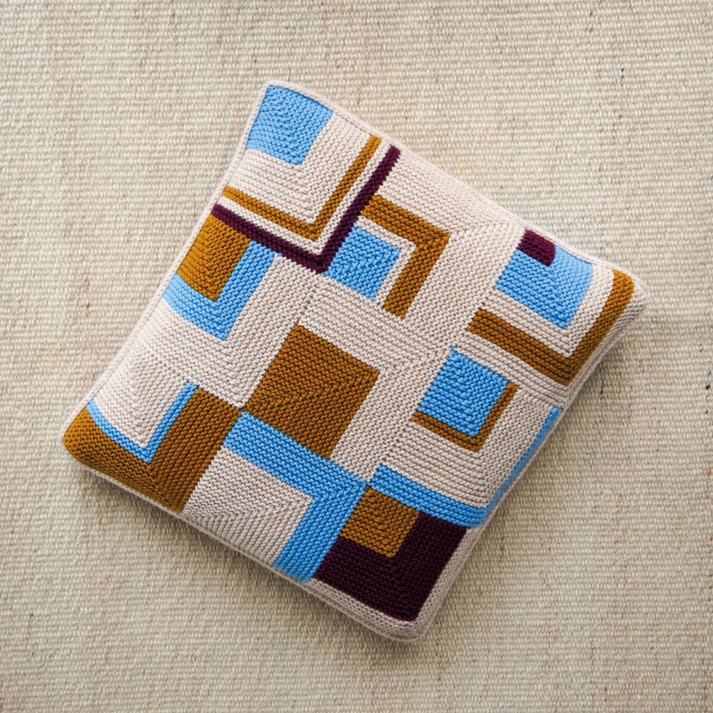 Trekroner Pude strikkes i teknikken dominostrik, som består i at strikke et kvadrat ad gangen, mens kvadraterne samtidig strikkes sammen. Hvert kvadrat strikkes i retriller med centrerede indtagninger over de 3 midterste masker på hver pind fra vrangsiden. Et diagram viser antallet af pinde, der strikkes med hver farve.