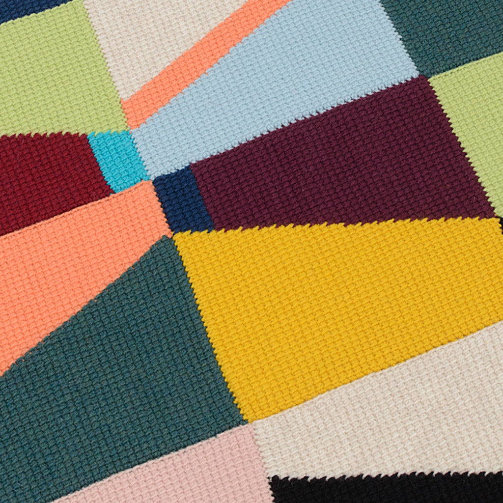 Udo Tæppe hækles i tunesisk hækling (også kaldet hakning) med gobelin-teknik efter diagram. Der hækles ni separate felter, som sys sammen til sidst. Der er videoguides til teknikkerne i opskriften.