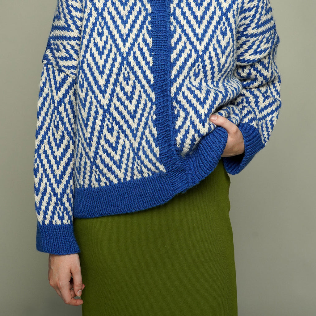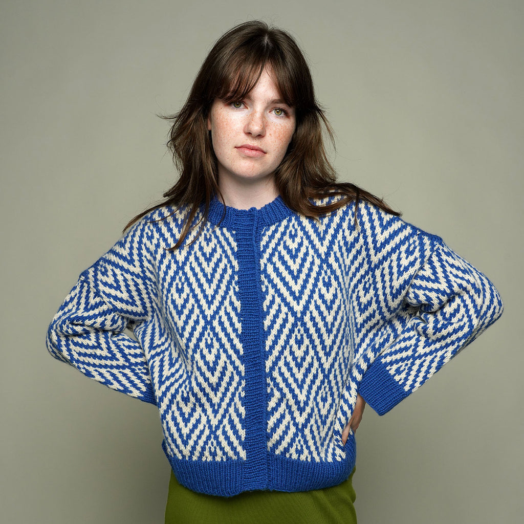 Vanna Bomber strikkes i flerfarvestrik med dominans. Krop og ærmer strikkes rundt hver for sig nedefra og op. Efterfølgende klippes der op i klippemaskerne midt for og i ærmegabene. Der strikkes kanter på, og forkanterne monteres med bånd og trykknapper. Der er videoguides til alle de vigtige teknikker i opskriften.