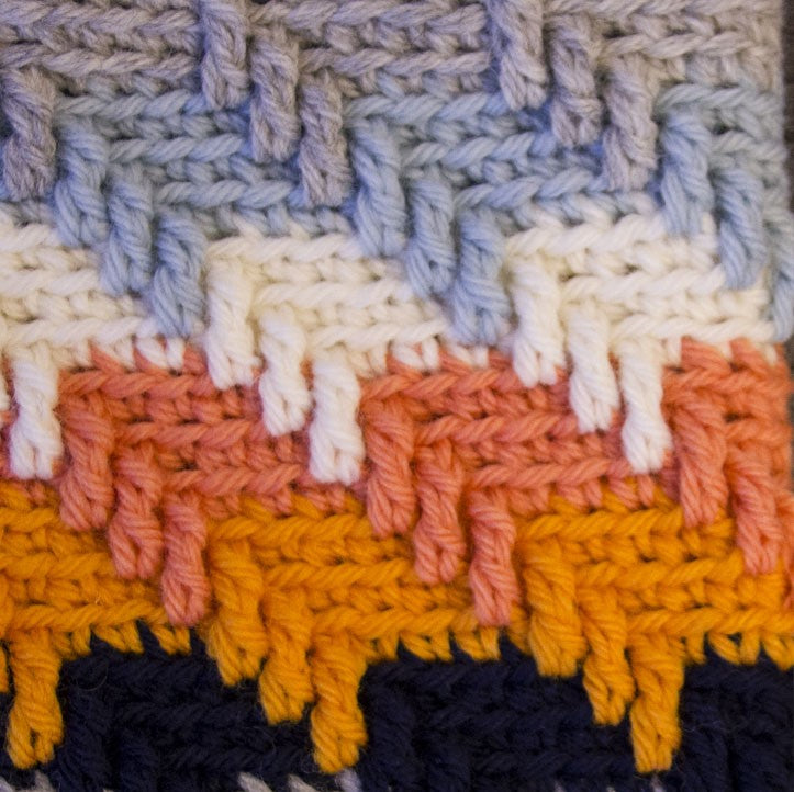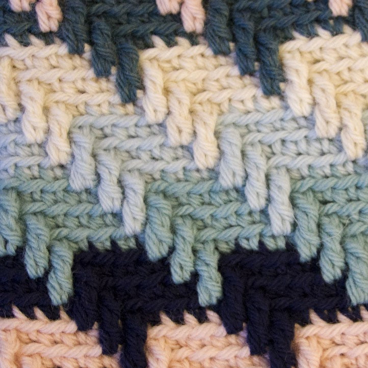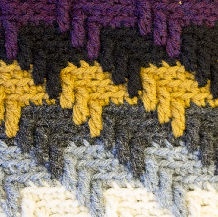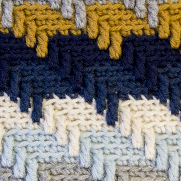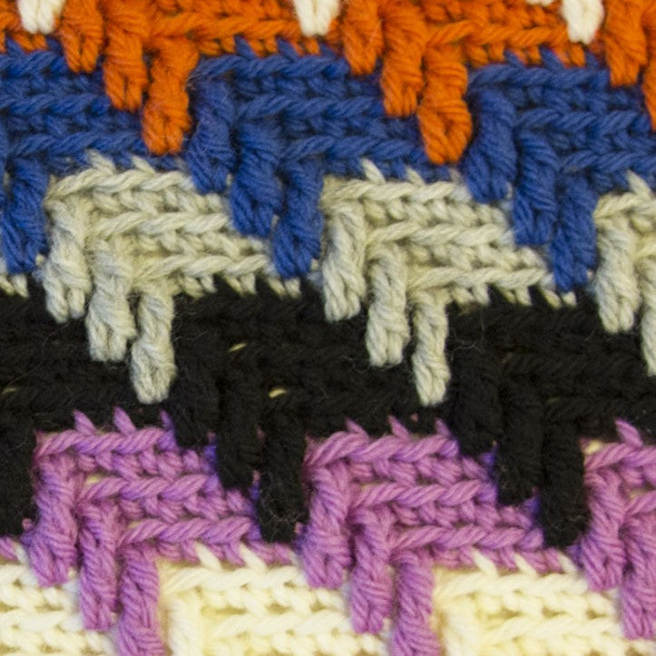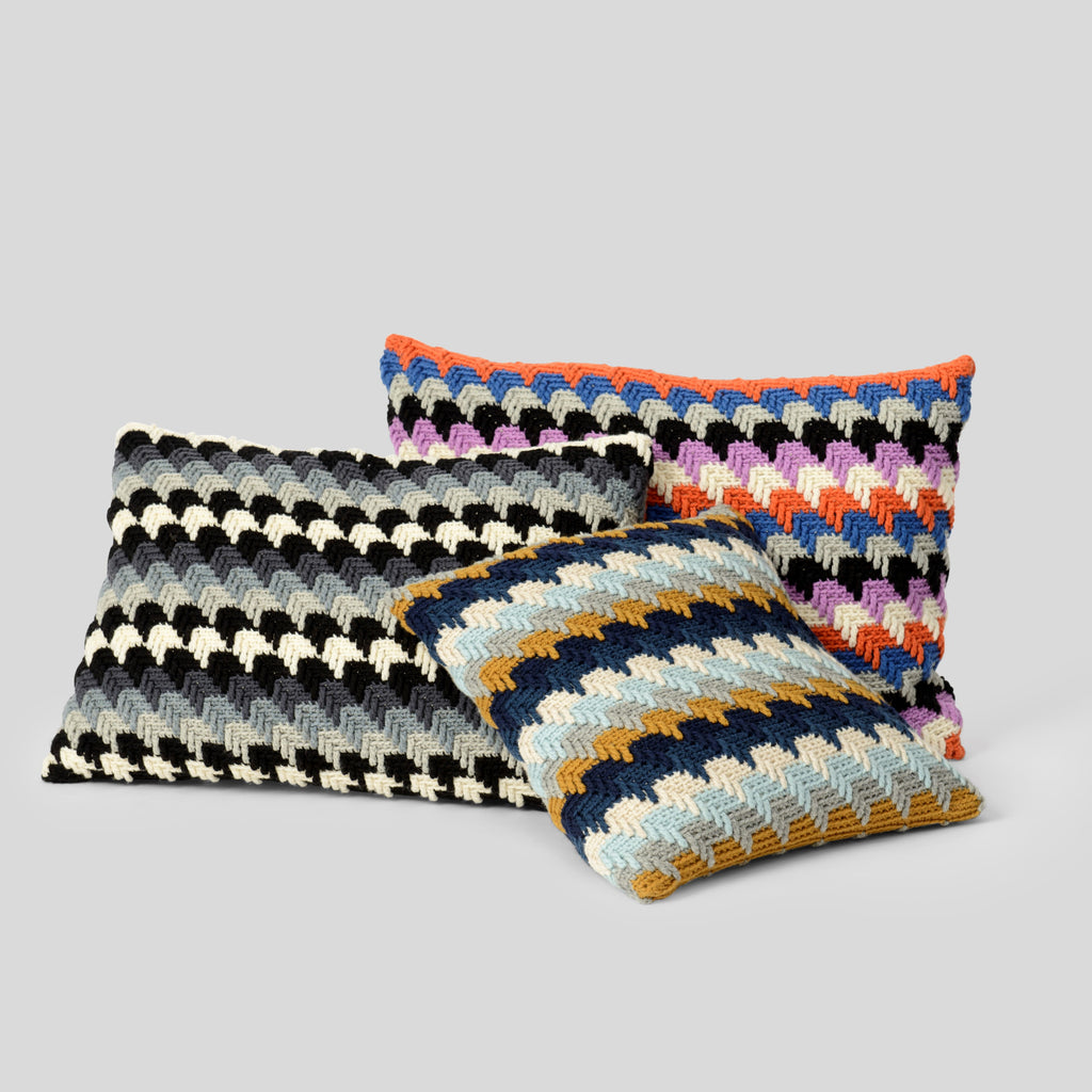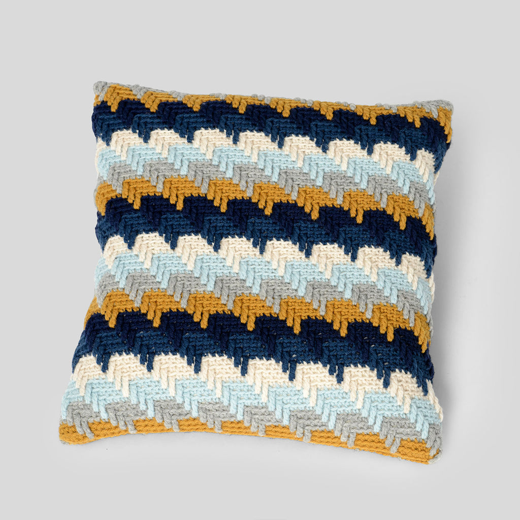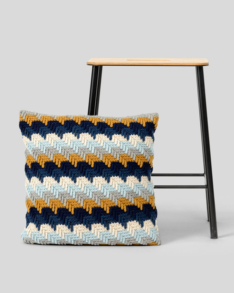 Kombinationen af markante grafiske striber og unikke farver skaber sammen et unikt design til denne hæklede pude. Designet er inspireret af øen Saltholm, der ligger i det pulserende Øresund. Saltholm Puden hækles i vores smukke Highland 100% uld i fem matchende farver.