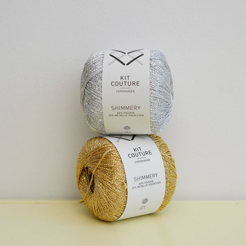 Shimmery er det perfekte garn til at blande med andre garntyper for at opnå et effektfuldt og eksklusivt udtryk. Garnet kan bruges til både strik, hækling og broderi, og fås i sølv og guld.