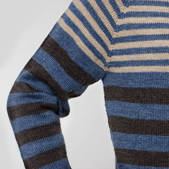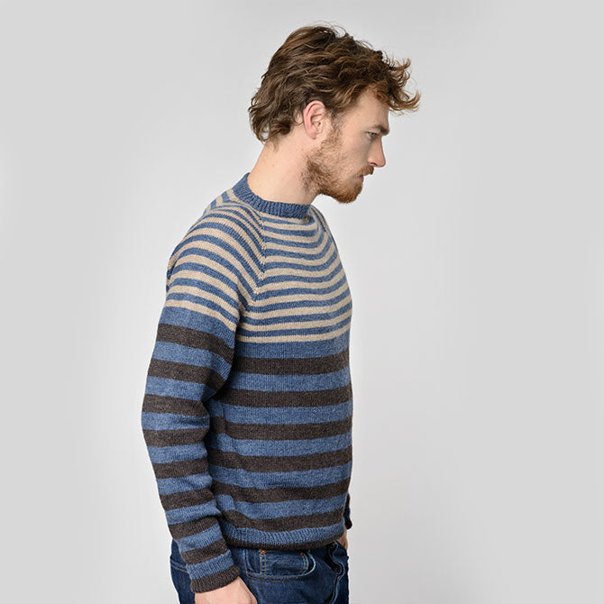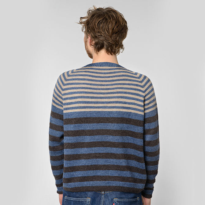 Sotra Bluse er en klassisk pullover til mænd, som strikkes i vores bløde Merino, som er dejlig varmt og nænsomt mod huden. Sotra har smalle striber øverst kombineret med bredere striber på den nederste del. Modellen har en god pasform, der klæder alle.