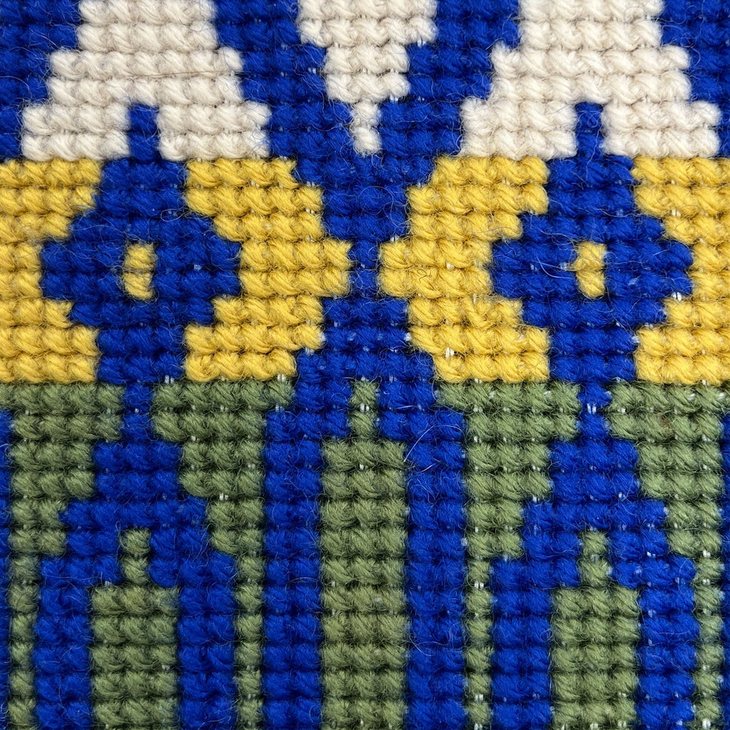 Stjernøya Puden har et raffineret design, som er inspireret af de klassike Fair Isle mønstre. Det fine mønster kombineres med et sporty twist i form af markante striber. Puden broderes med fire matchende farver, og teknikken er korssting.