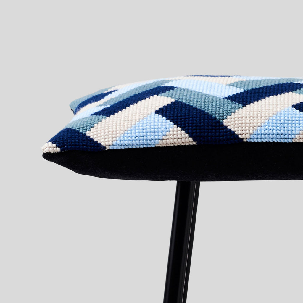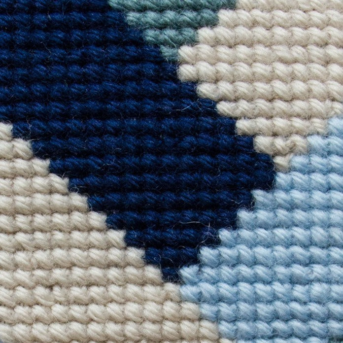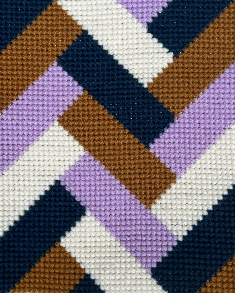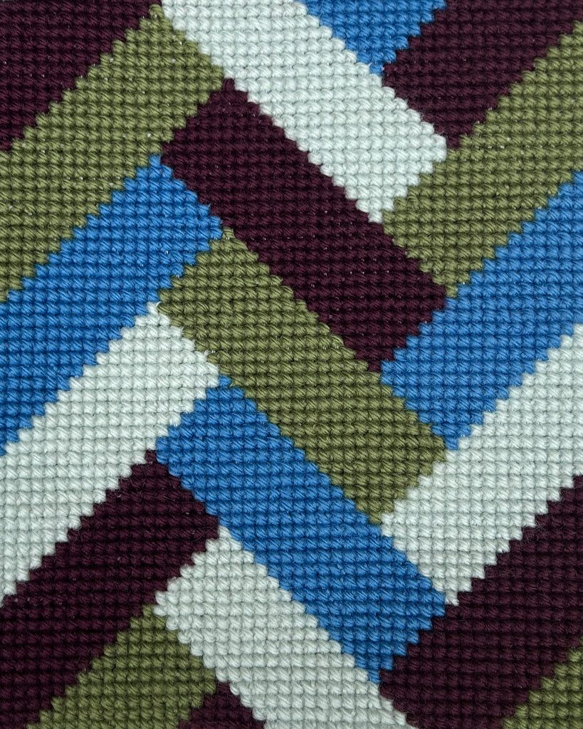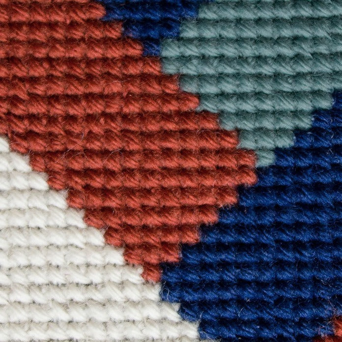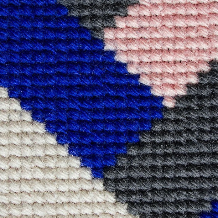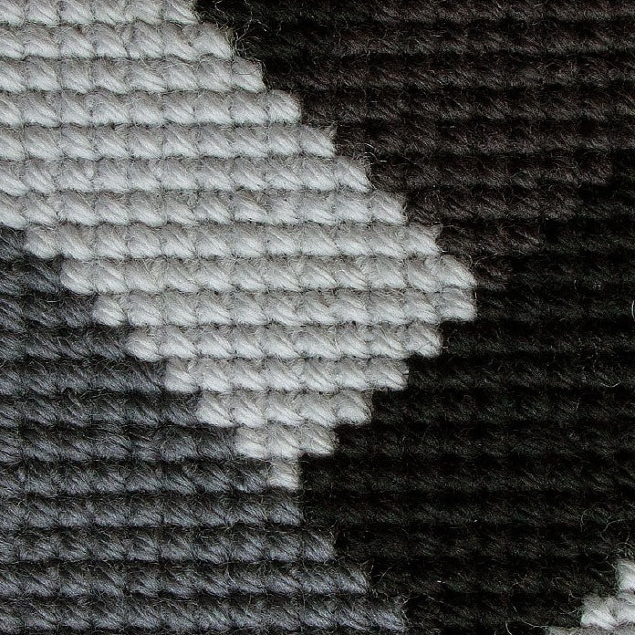 Store Rallen Pude broderes med korssting efter et diagram i uldbroderigarn. Puden monteres afslutningsvist med en bagbeklædning enten på symaskine eller i hånden.