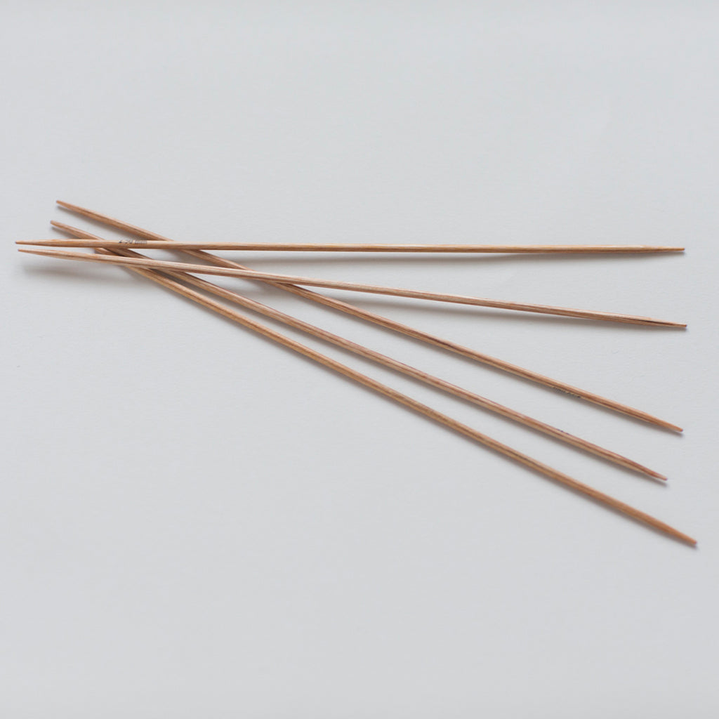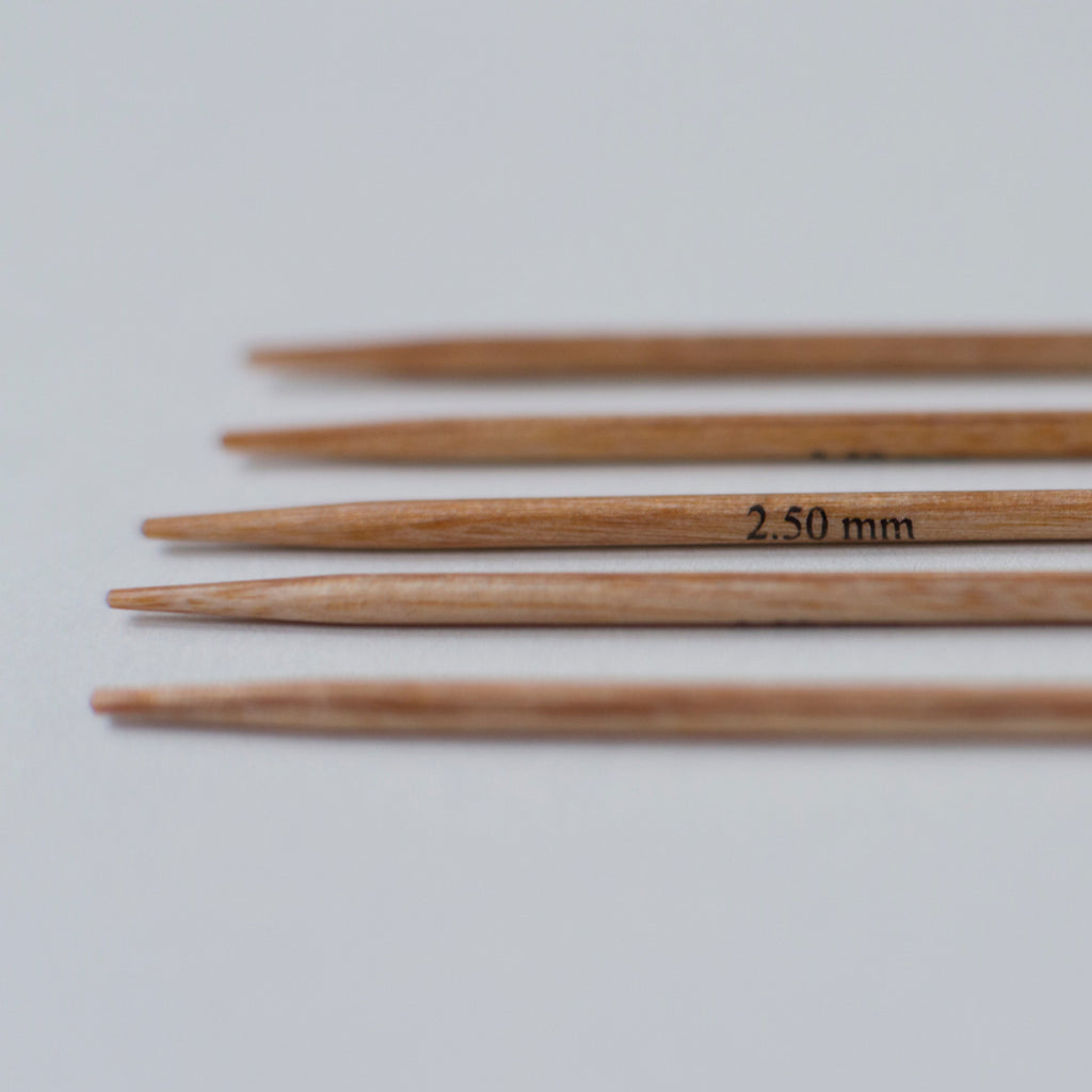 Vores strømpepinde er lavet af birketræ. Pindene ligger rigtig godt i hænderne, og garnet glider let og ubesværet over pindene.